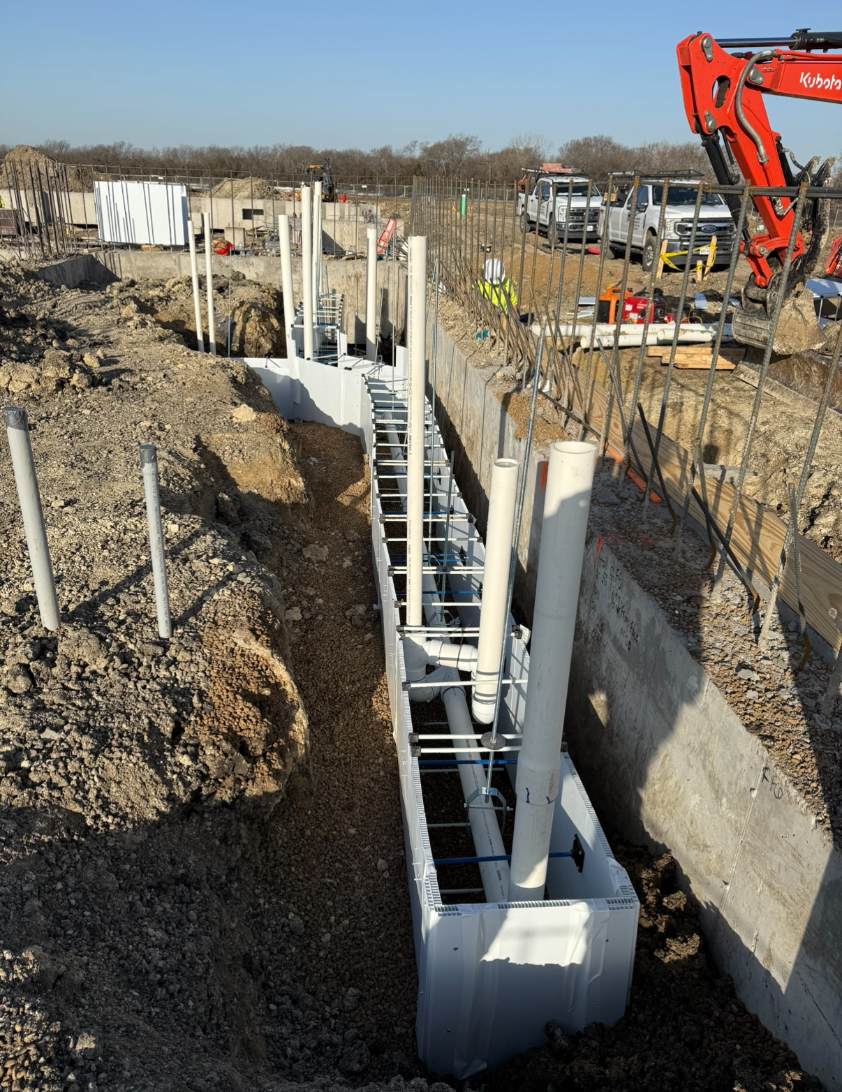 Efficient plumbing installation for warehouses, shell buildings, and commercial interiors requiring precision and coordination with multiple trades.